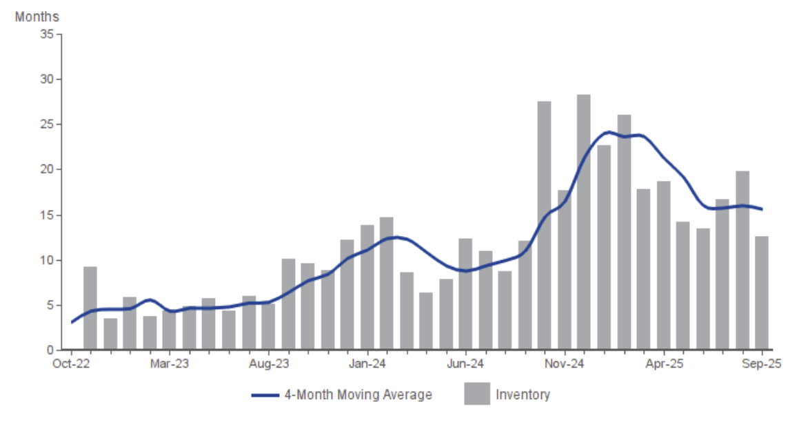 Months Supply of Inventory | Properties for sale divided by number of properties sold.